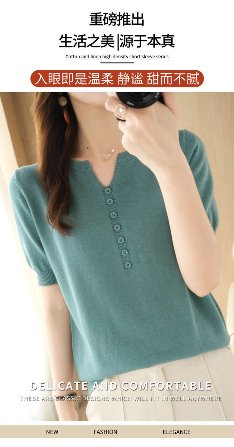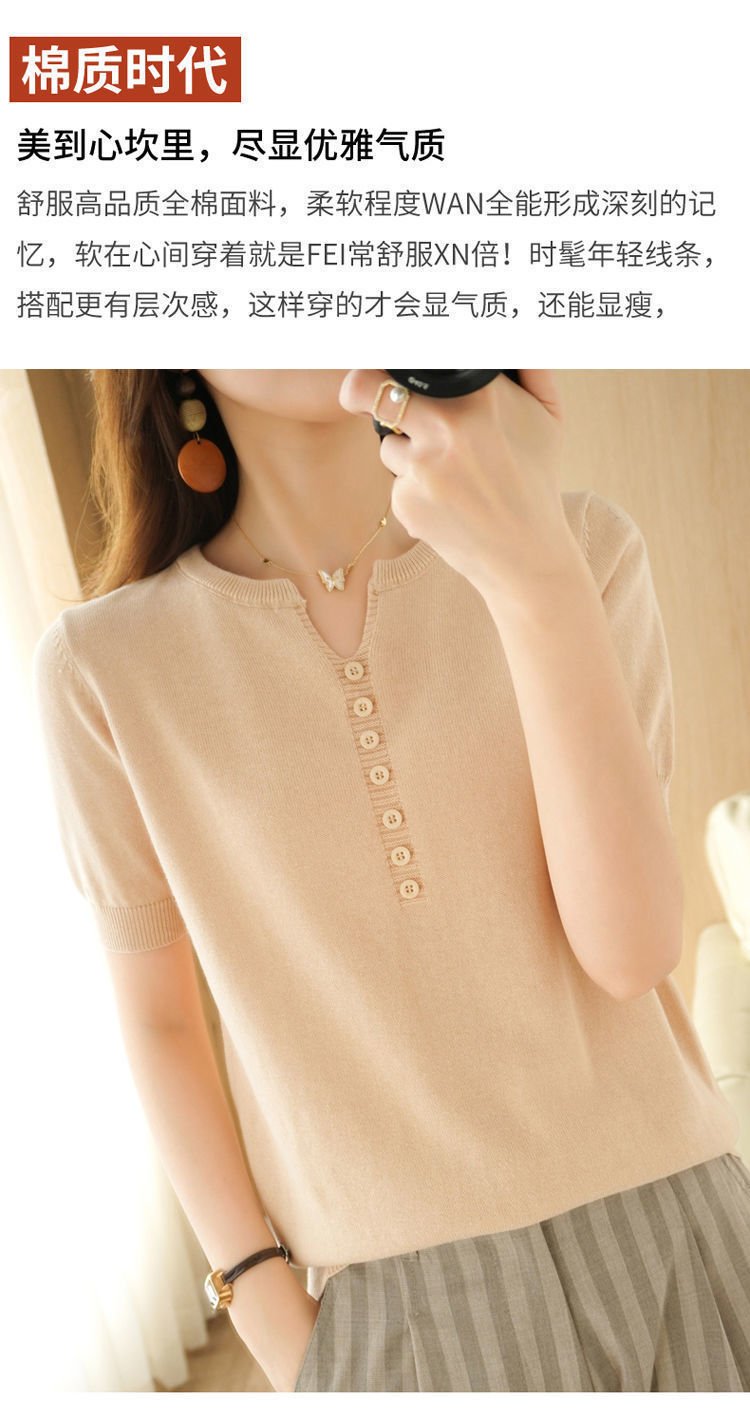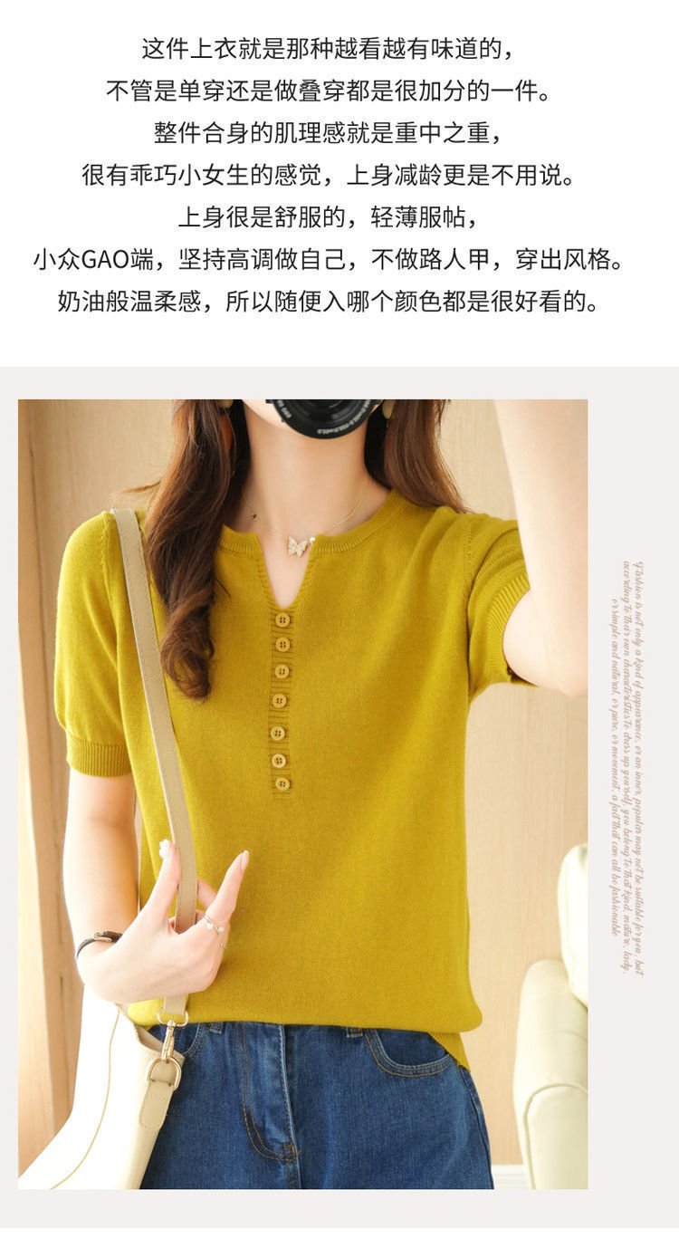 Vapetix Unisex size [80-145 lbs]-Unisex size [80-145 lbs] Knit Short Sleeve Women’s V-Neck Button Down T-Shirt Versatile Stylish Ice Silk Thin Loose Base Top