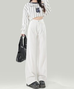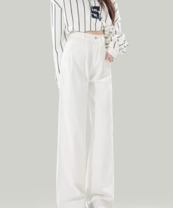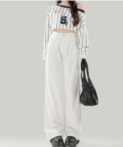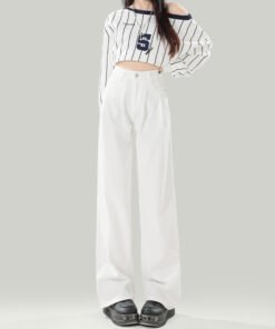 Vapetix XS-2XL Women’s High-Waisted White Jeans with a Slimming Design for 2026 Spring and Summer, Featuring Pleat
