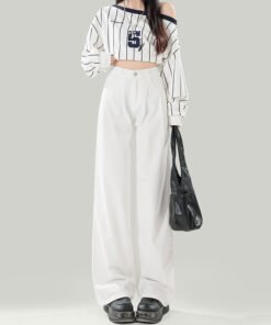 Vapetix XS-2XL Women’s High-Waisted White Jeans with a Slimming Design for 2026 Spring and Summer, Featuring Pleat