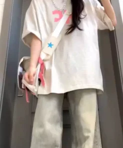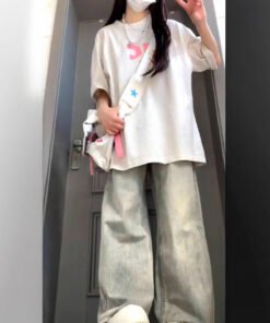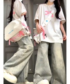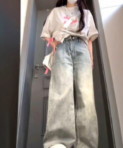 Vapetix XS-4XL American high street yellow mud wide-leg jeans for women in summer 2025 loose high waist straight t