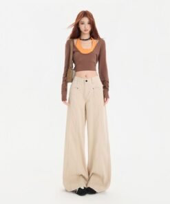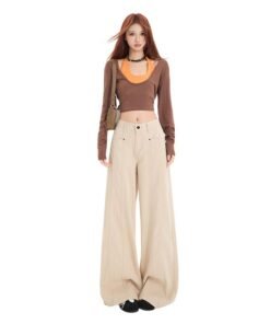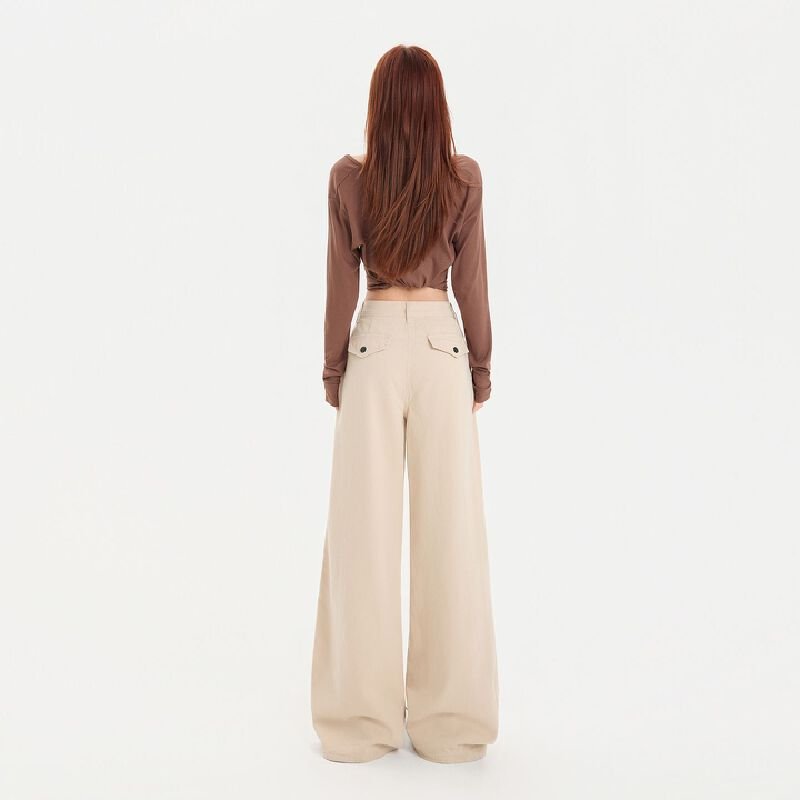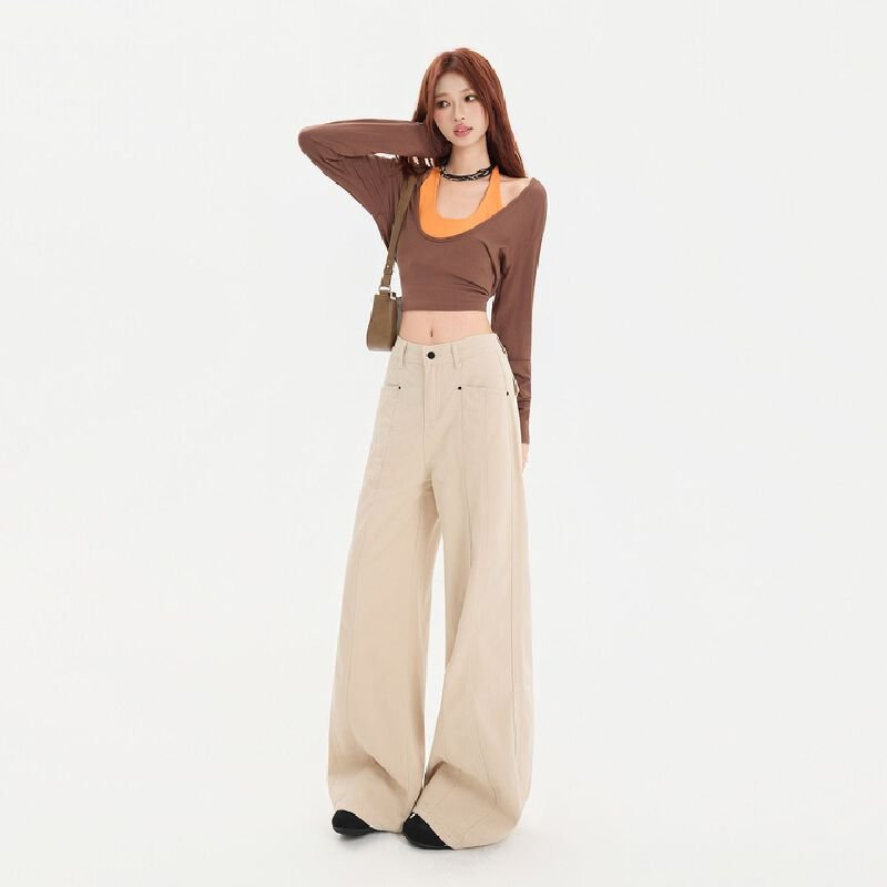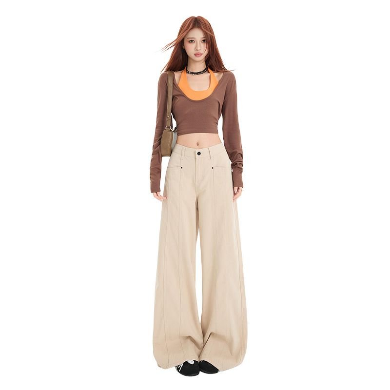 Vapetix XS-XL Real-shot: Beige Workwear Wide-leg Denim Pants for Women, New Style, American Style, High Waist, Sl