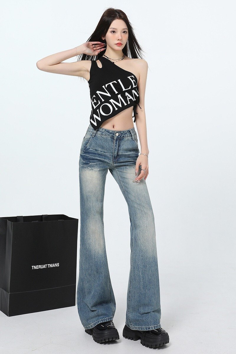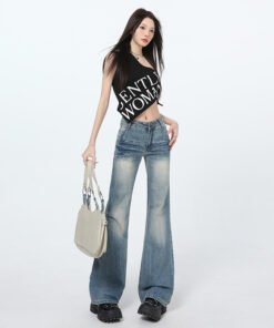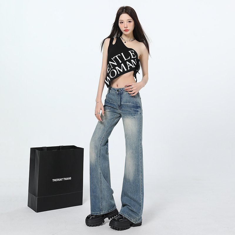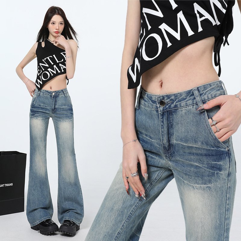 Vapetix XS-XL Summer and Autumn Style 8839# Spicy Babe Washed Crease Micro-Hot Wide Leg Women’s Low-Waist Straigh
